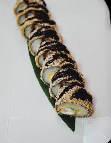 кунжут білий , листя бамбука , вугор , крем-сир , норі , огірок , рис , чука